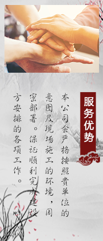 堅(jiān)持質(zhì)量為先,信譽(yù)為重,管理為本,服務(wù)為誠(chéng)的理念。本著對(duì)社會(huì)、對(duì)建設(shè)單位負(fù)責(zé)的原則,將工程質(zhì)量、安全生產(chǎn)放在工作的重要位置。我們堅(jiān)持發(fā)展古建藝術(shù),弘揚(yáng)民族文化,作為企業(yè)的經(jīng)營(yíng)管理理念。曲阜古建筑義德古建始終秉承“科學(xué)管理,創(chuàng)精品工程,打造古建筑行業(yè)標(biāo)準(zhǔn)”的方針,追求更高質(zhì)量,為文物保護(hù)、傳統(tǒng)建筑事業(yè)做出貢獻(xiàn)。